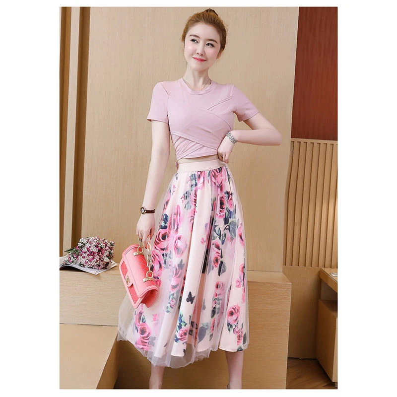 Ruffle Two-piece Skirt Set - Stella La crop top and high waisted skirt set formal