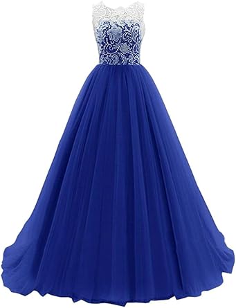 SYTX Womens Sleeveless Lace Tulle wedding dress dark blue