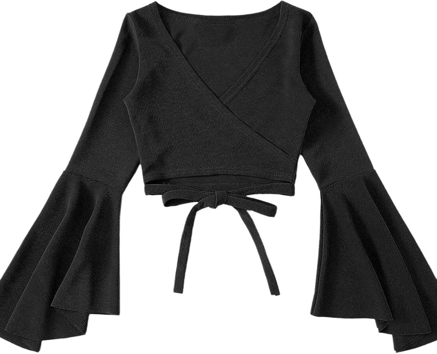 Floerns Women's Plus Size V Neck white wrap blouse plus size