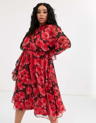 Missguided Plus high neck midi dress in red and black plus size outfits