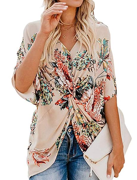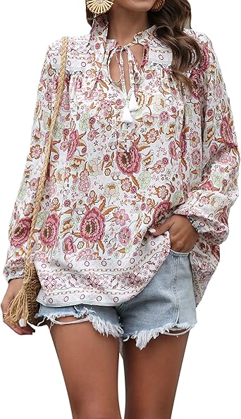 Women Casual Boho Shirts Floral Print V boho shirts amazon