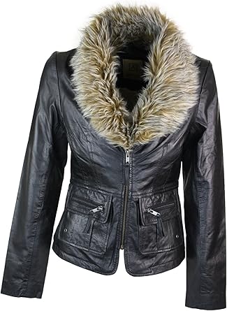 Ladies Real New Vintage Short Black amazon uk ladies leather jackets