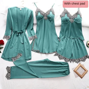2020 Summer Autumn Spring 5 Pieces Set silk shorts and top nightwear