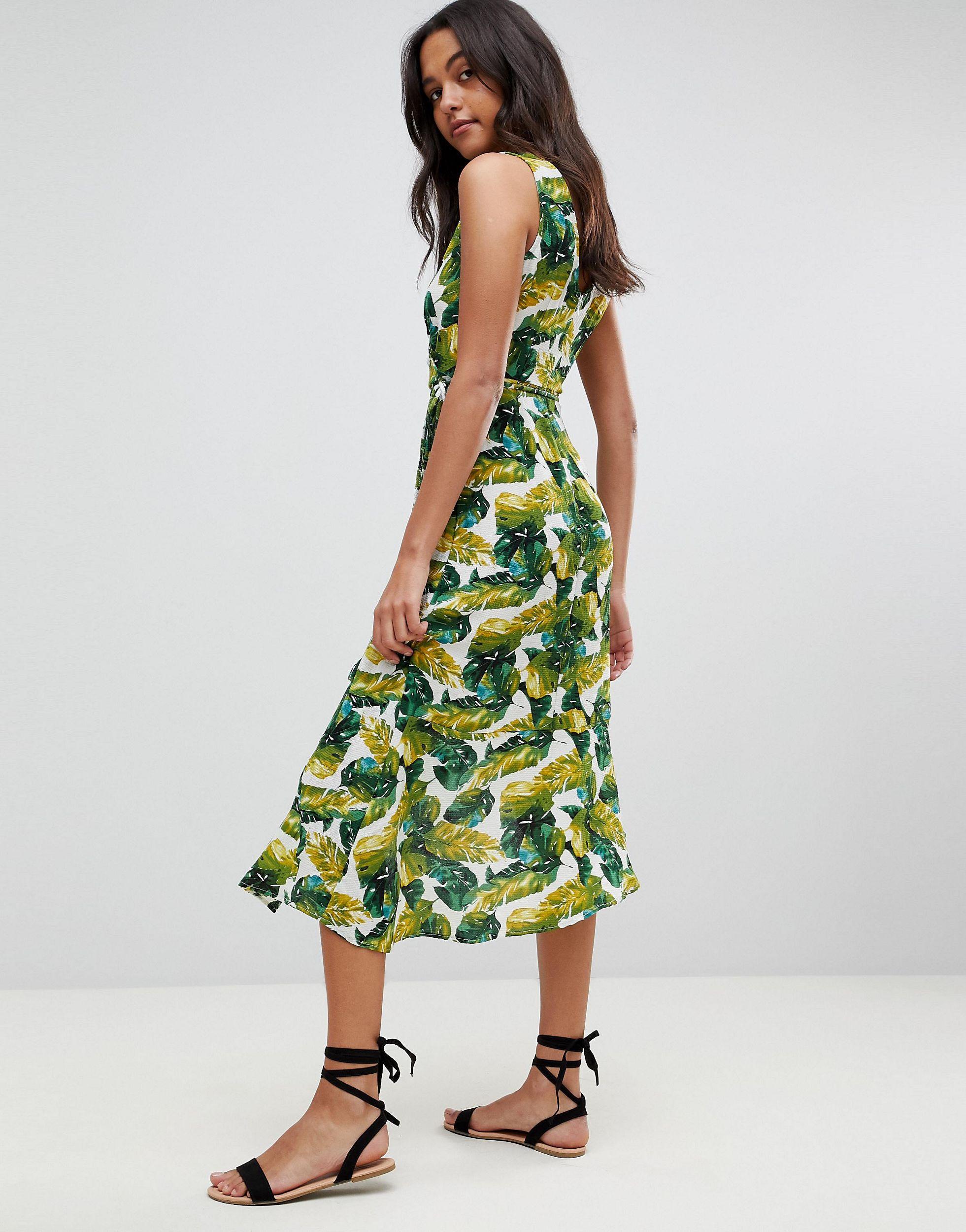 AX Paris Wrap Dress With Frill Palm ax paris green wrap dress