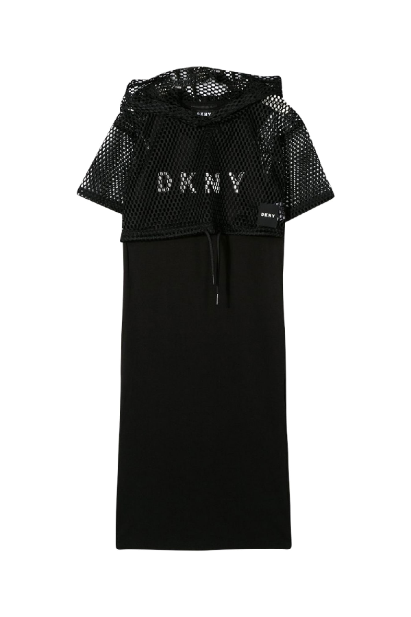 Dkny Kids' Hooded Mesh Panel Dress In dkny dress kids
