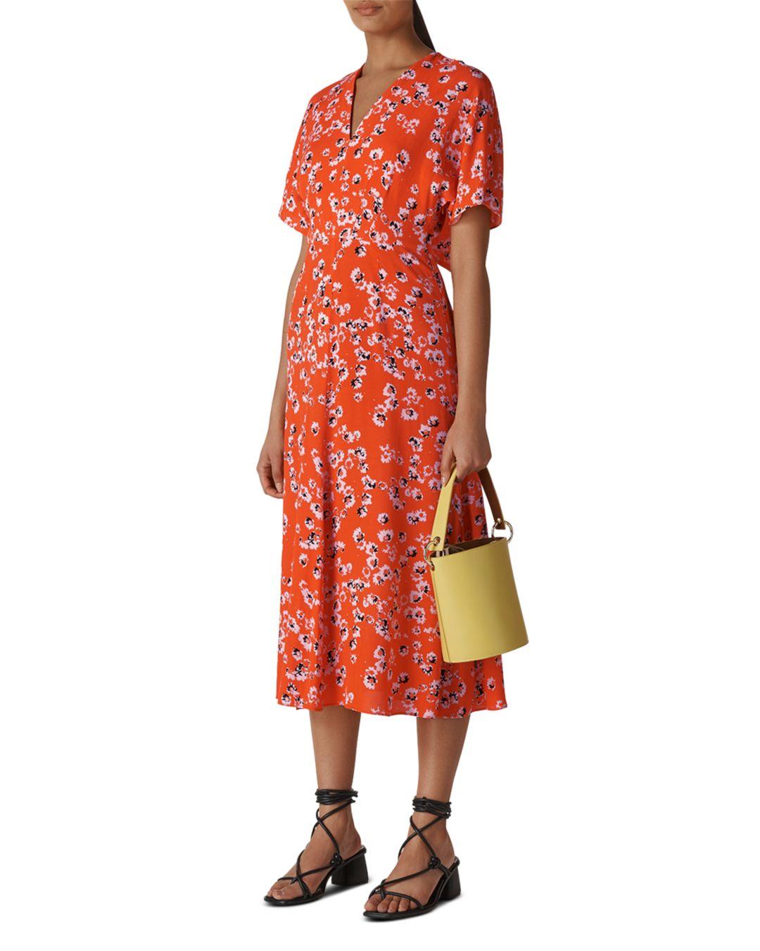 Whistles Leather Digital Daisy Zelena red dress whistles