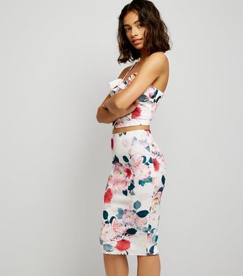 Petite Pink Floral Print Bodycon Midi floral bodycon skirt