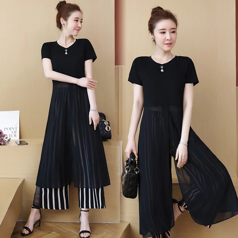 black chiffon suit