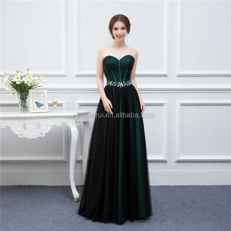 New Design Emerald Green Evening black gown new design