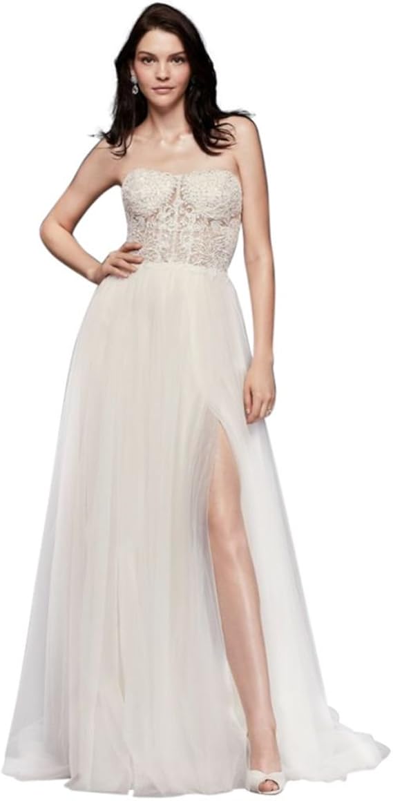Strapless Wedding Dress with Tulle Slit strapless wedding dress with tulle skirt