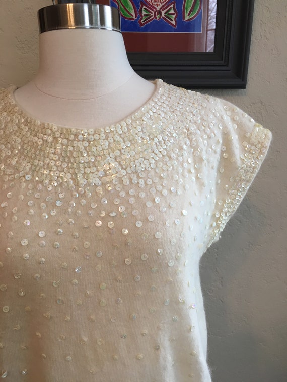 1980s Winter White Sequin Sweater | Etsy white sequin sweater