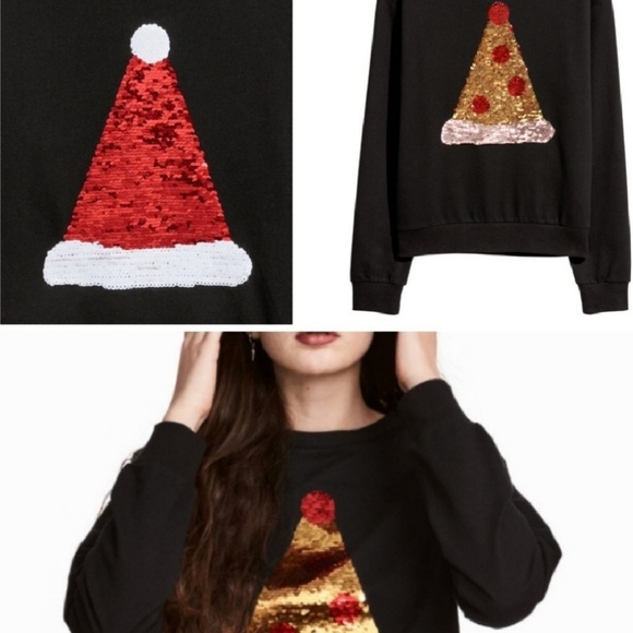 H\u0026M Tops | Hm Santa Hatpizza Reverse pizza christmas tree sequin sweater