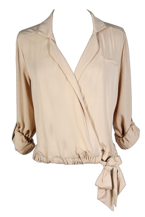 Cute Beige Blouse Lily Boutique cute work blouses