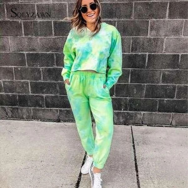 2020 Plus Size Autumn Green Tie Dye plus size sweatpants outfit