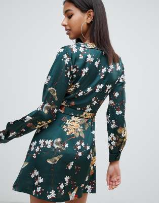 Missguided satin wrap mini tea dress in missguided green wrap dress