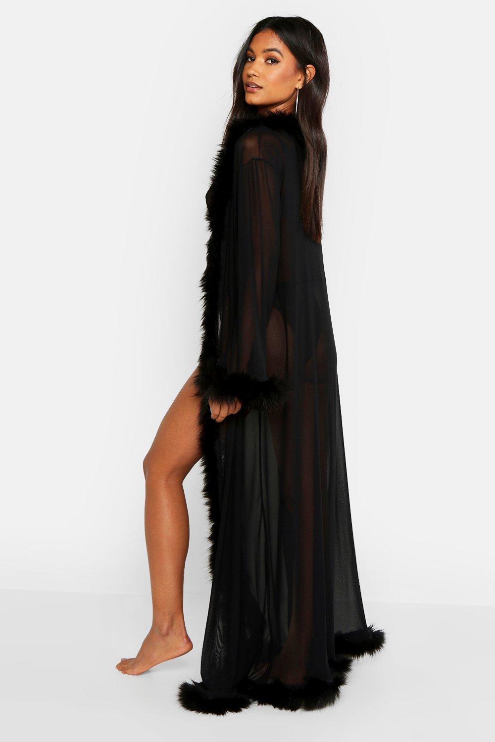 Premium Fluffy Trim Maxi Robe fluffy maxi robe