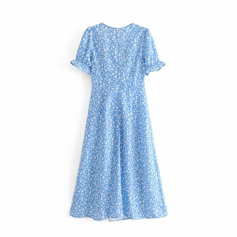 Summer blue midi Dress women white  blue and white floral midi dress