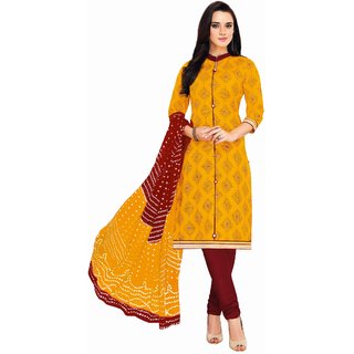 Roha Fab 100% Cotton Yellow Gold Brown yellow white combination suit