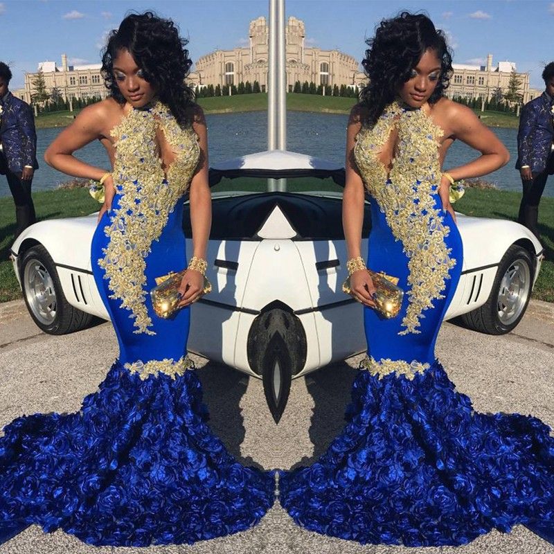 2019 Modern Royal Blue Halter Mermaid blue prom dresses for 11 year olds