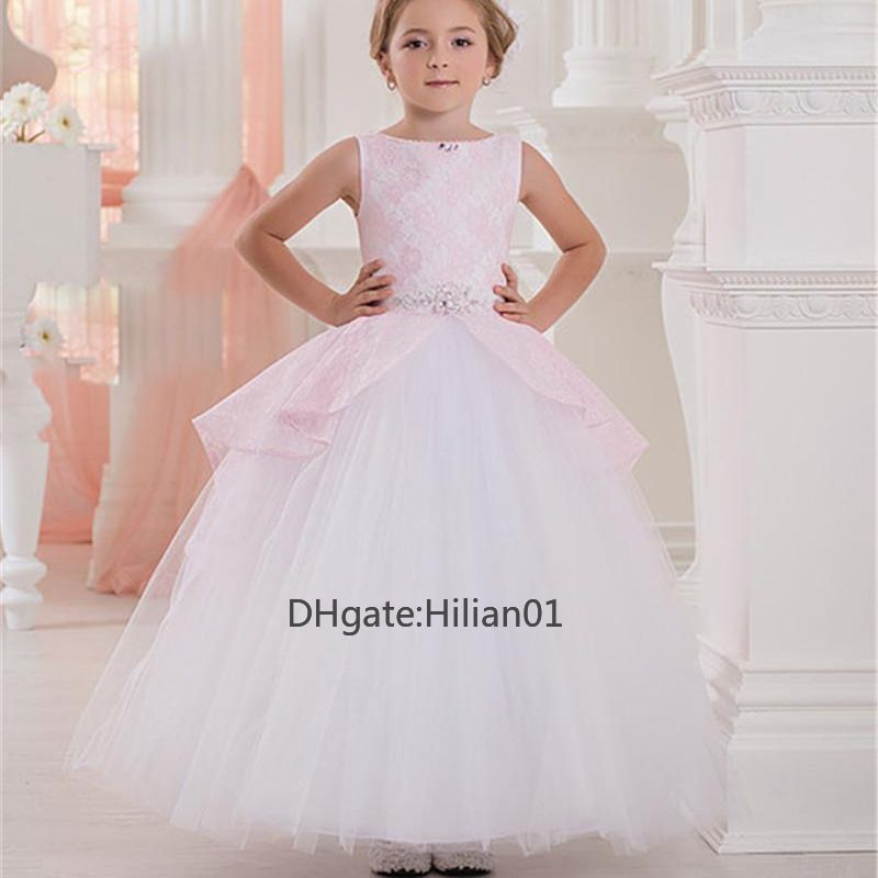 Flower Girls Dresses Lace Applique Long little girl fluffy dresses
