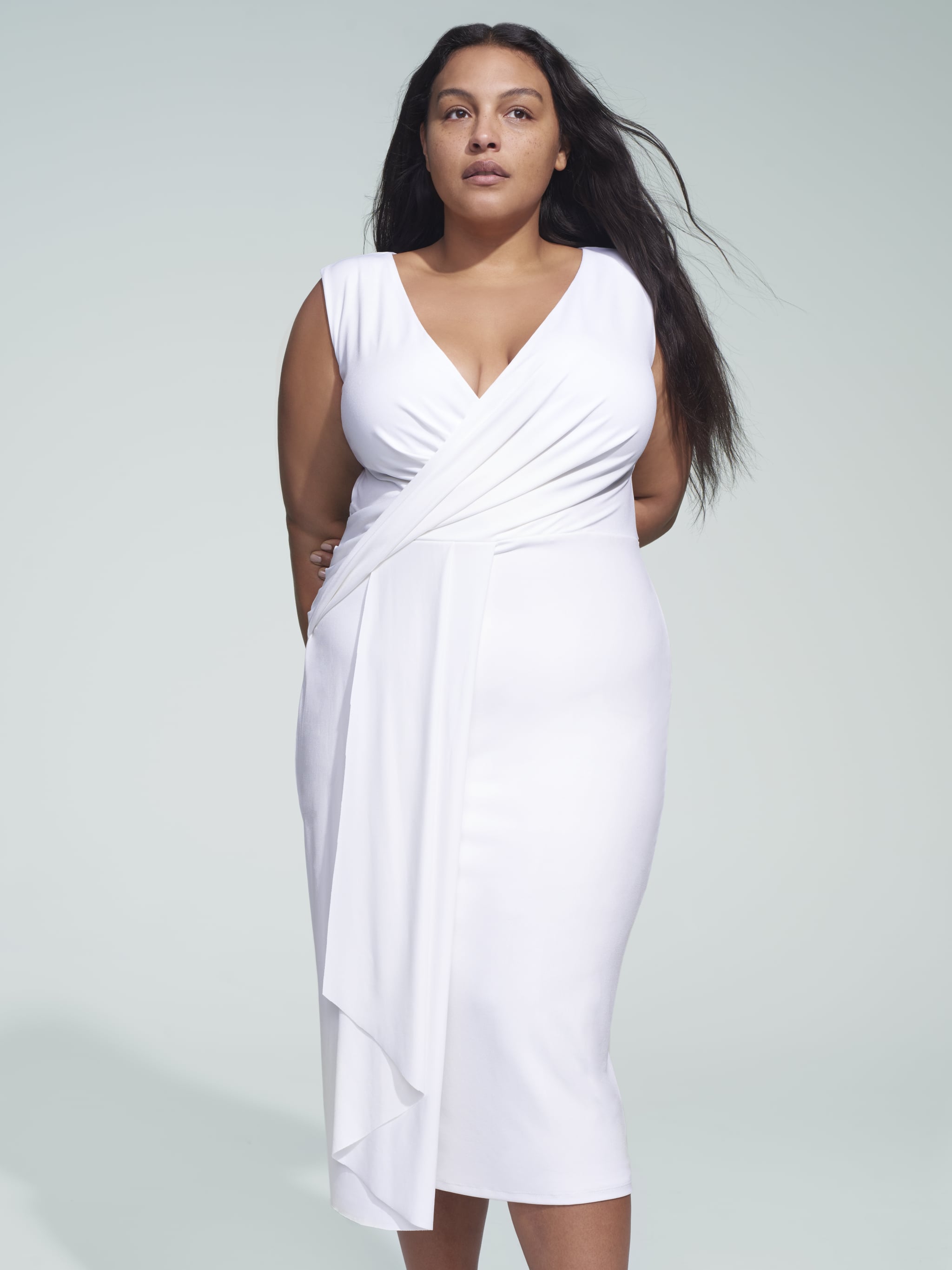 Eloquii Draped Asymmetric Midi Dress jason wu and eloquii