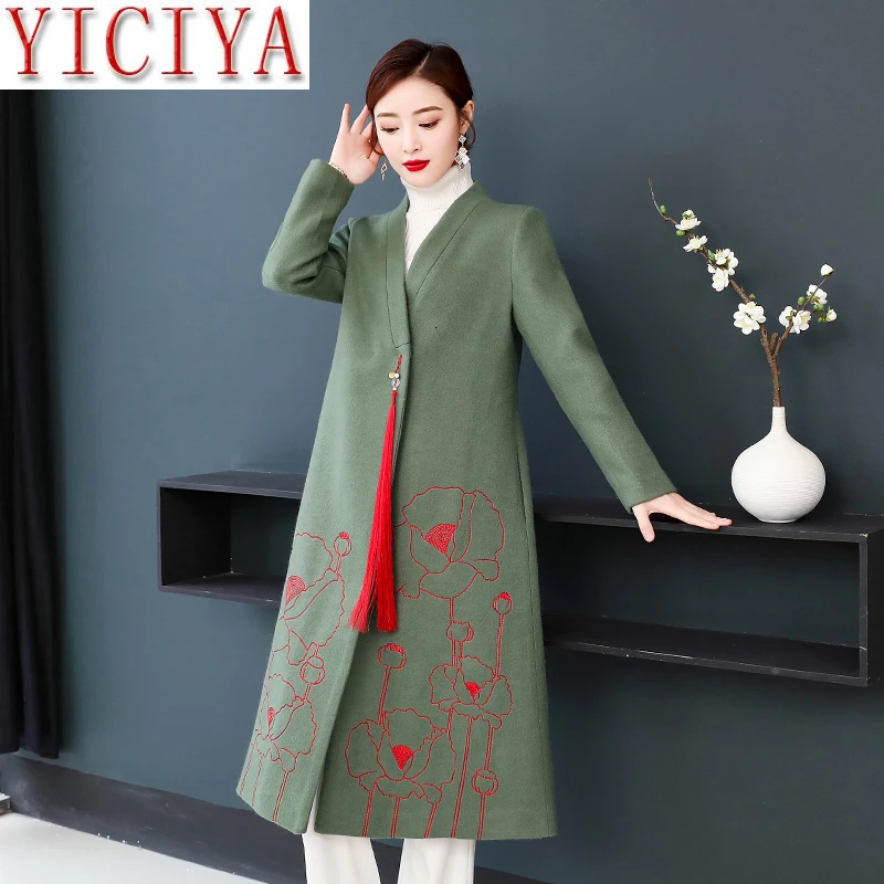 Chinese Blend Jacket Clothing|Wool plus size green coat