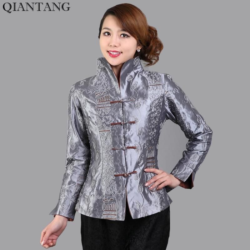 Free Shipping Autumn Winter Chinese women's silk jackets