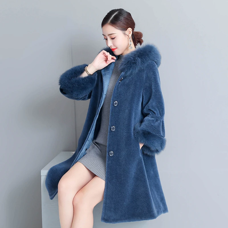 Korean Winter Faux Fur Wool Coat Women plus size wool coat with fur trim