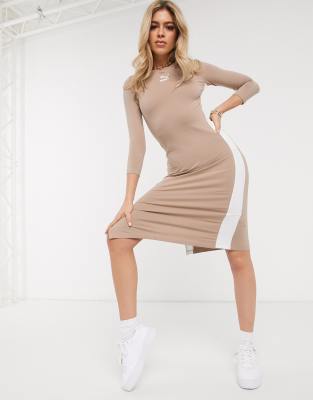 Puma Midi Dress with Side Split in tan puma midi skirt