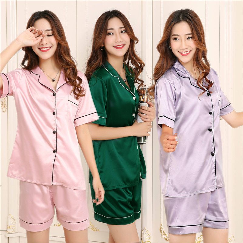 2020 Summer Women Satin Pajamas Silk house wear clothes for ladies