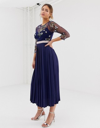 Little Mistress Blue Midi Dresses little mistress tara navy floral embroidery midi dress