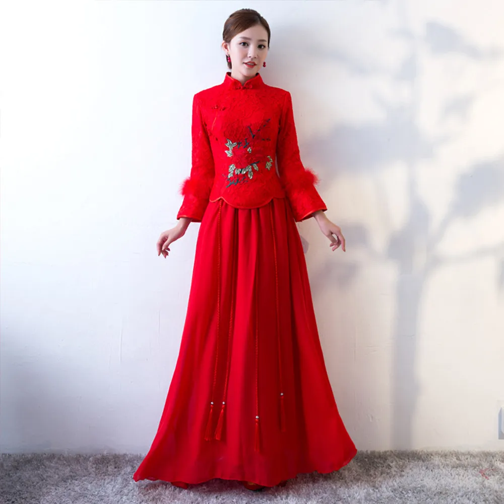 Classic Vintage Chinese Women Wedding chinese collar long gown