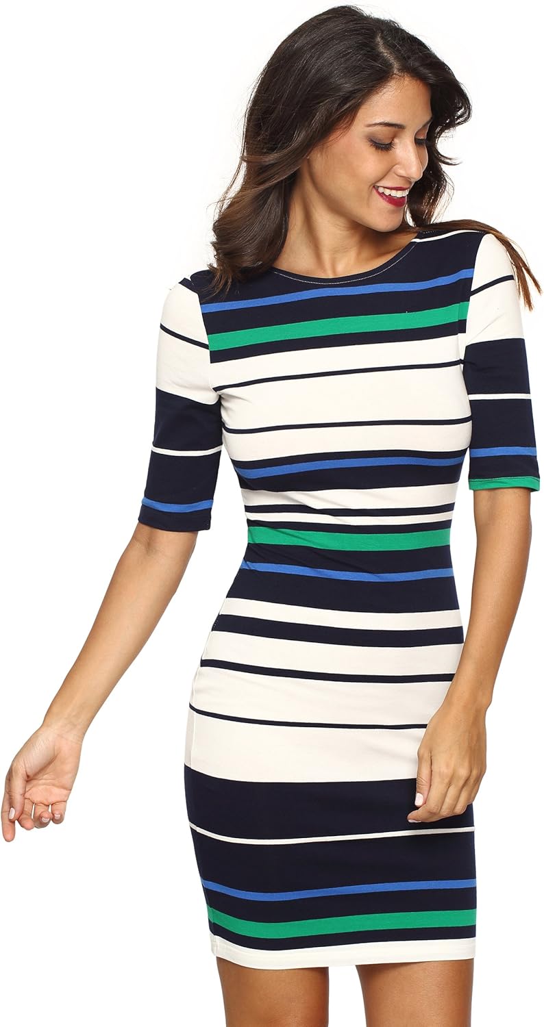 MakeMeChic Women's Striped Half Sleeve half zip bodycon dress