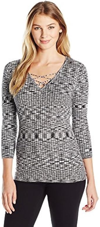 Ribbed Space Dye V Neck, Rayon Charcoal united states sweaters