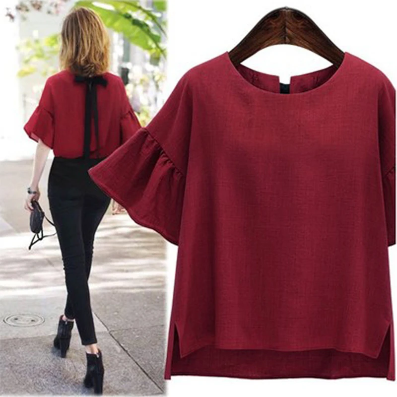 Back Bow Tie T Shirt Women Plus Size Xl womens plus size red tops