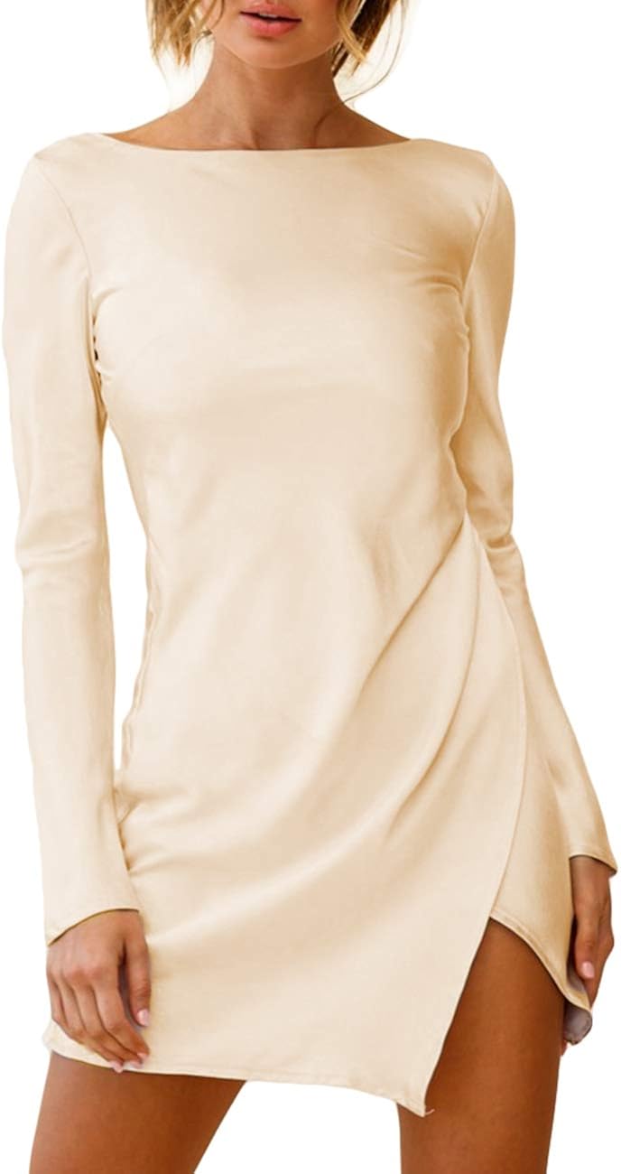 Asymmetrical Hemline Satin Mini Dress champagne color dress amazon