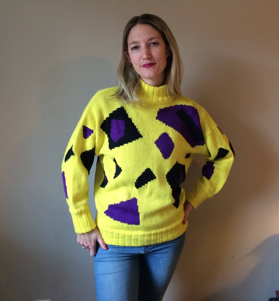 Yellow Dino Print Esprit Sweater 80's esprit sweater