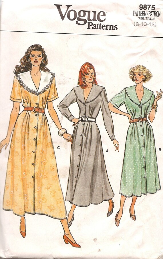 Pattern Vogue 9875 Button Down Shoulder button down midi dress pattern