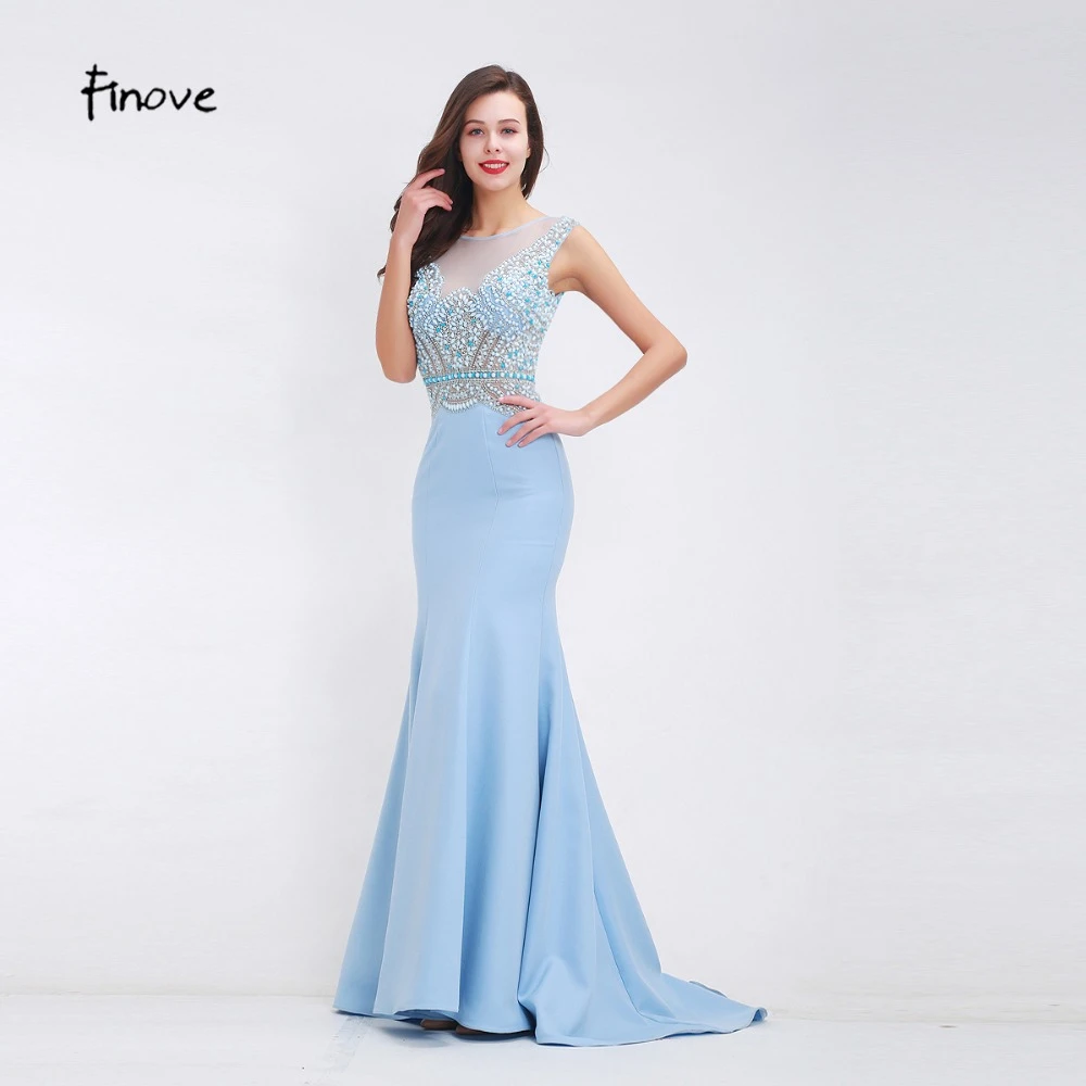 Finove Beading Baby Blue Prom Dresses baby blue dress prom