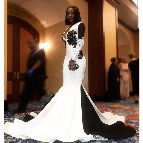 White And Black Splice Mermaid Evening white stuff occasion dresses