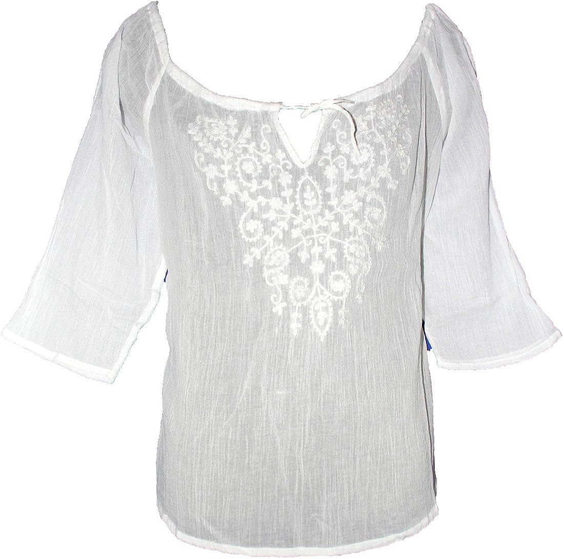 Nitsa Roll Sleeve 100% Pure Gauze white cotton hippie dress