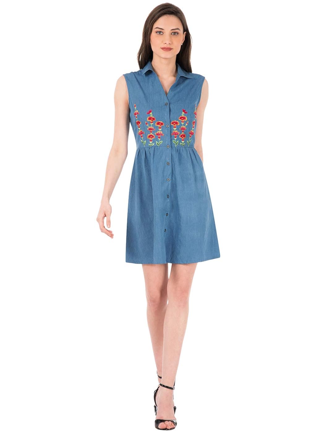 Buy Women Blue Denim Front Laceup faballey denim dress