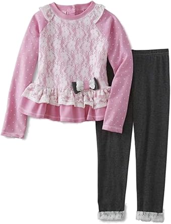 Girls Pink \u0026 White Lace Sweater Top  pink sweater and leggings set