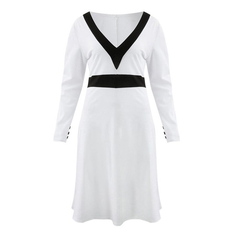V-Neck Patchwork Colorblock Side Slit white spandex dress plus size