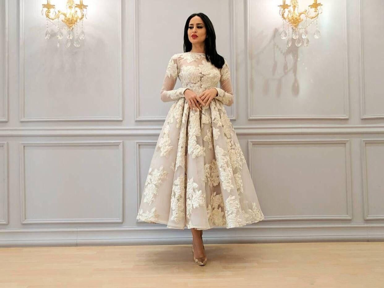 2020 Prom Dresses Lace Beaded Crystals ankle length evening dress