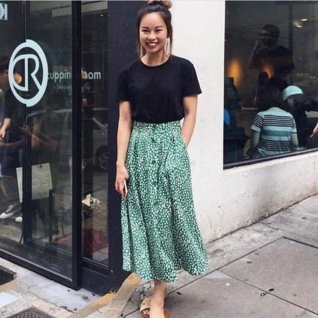 MONKI PLEATED MIDI SKIRT - GREEN WITH  taylor pink animal pleat midi skirt