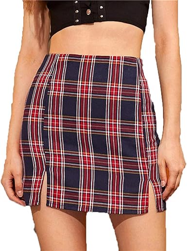 Amazon.com: Plaid Side Slit Bodycon plaid bodycon skirt