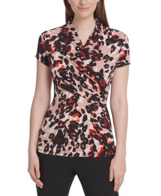 DKNY Animal-Print Stretch Wrap Blouse wraparound blouse