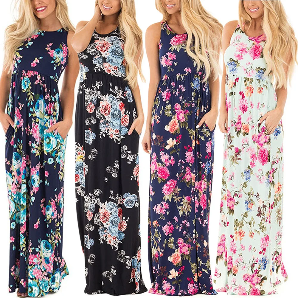 Sleeveless Floral Print Loose Beach summer dresses at fashion world