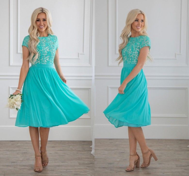 2019 Turquoise Short Modest Bridesmaid turquoise and gold bridesmaid dresses